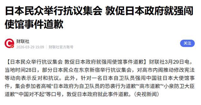 至于陆上自卫队士官强闯中方使馆那事儿,不过是压死骆驼的最后一根稻草。民众心里都清楚的很,这事根本不是什么个人行为,而是政府纵容极右翼思想的结果。
