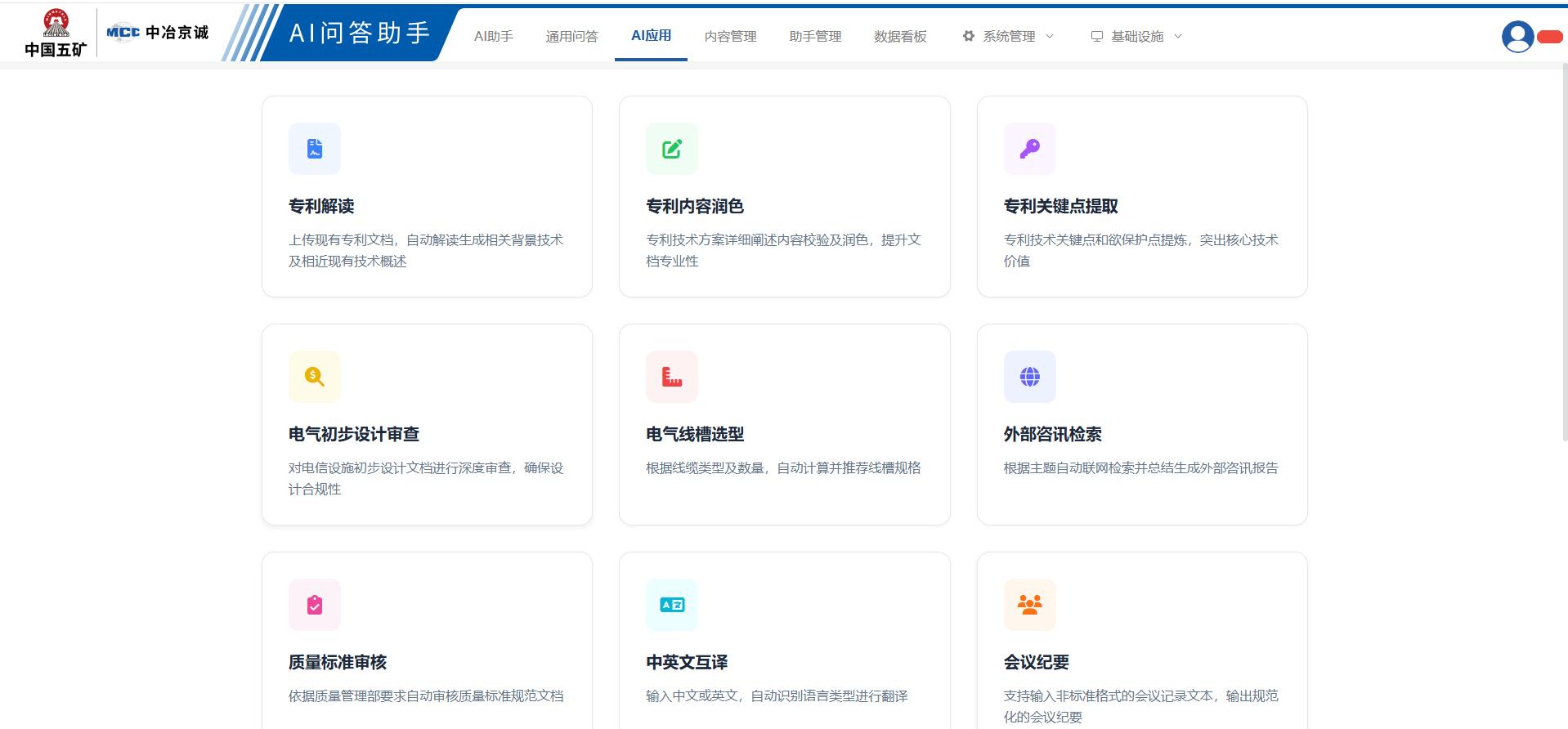一是知识全生命周期管理,通过文档解析功能自动处理多格式文件,提取中冶京诚4万+标准、案例、公司规范等信息并结构化存储,同时对接外部API实时更新国标、行标,形成动态知识库;