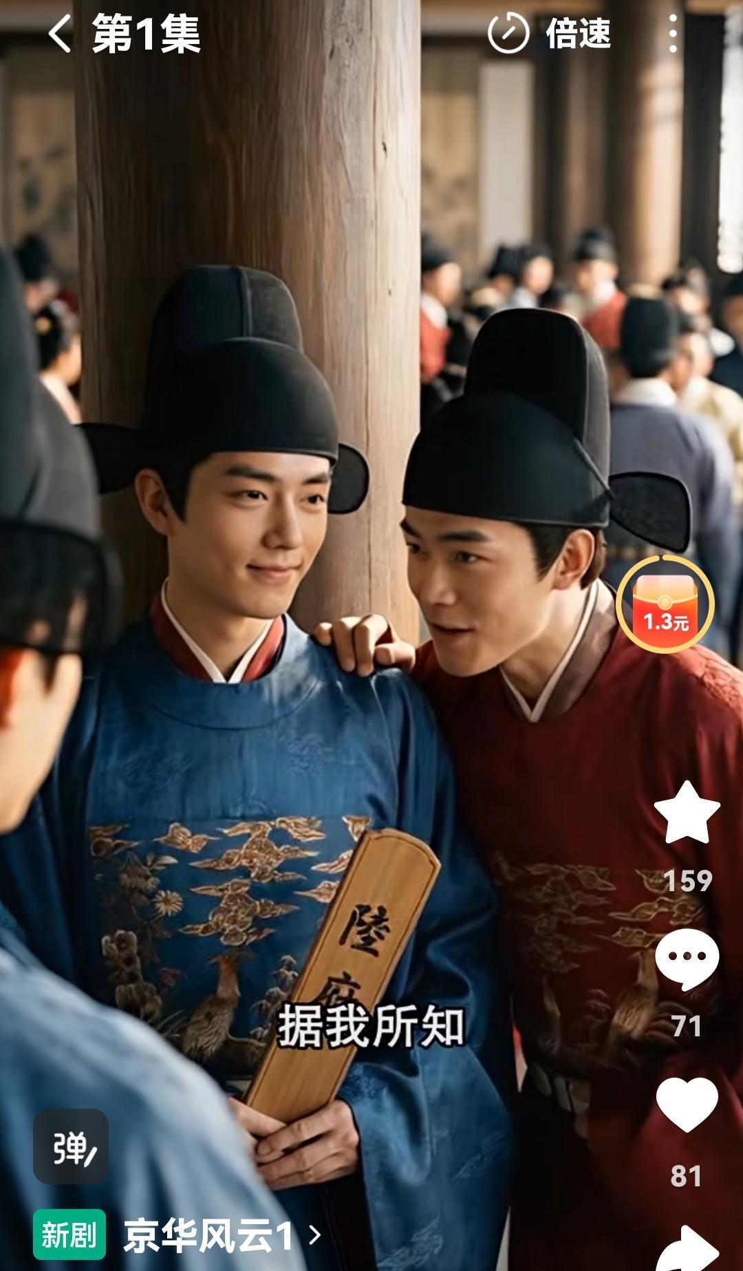 红星新闻记者注意到,这是一部AI微短剧,据介绍,该剧讲述主角陆云瑶高中探花之际,遭人诬陷科场舞弊,幸得他自证清白,成功入职翰林院。此后,他屡遭同僚刁难,最终凭借才智与太子信任,化解危机。